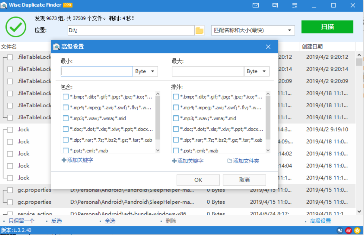 摘要:Wise Duplicate Finder是一款专门用户扫描和清理磁盘重复文件的软件,软件没有格式的限制,您只需选择匹配的级别,就可以对指定的文件夹进行快速的扫描,支持设置文件大小的上下线和格式…